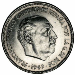 Le texte ci-dessous relate le mariage de la fille unique adorée de Franco, Carmen Franco Polo (1926-2017) : il est extrait de l’excellente biographie de Franco de l’historien espagnol Julián Casanova, publiée au début de 2025. Grand spécialiste de la période et de la dictature franquiste, J. Casanova met bien en évidence la dimension aristocratique du mariage. Carmen Franco Polo épouse le marquis de Villarde, Cristóbal Martínez-Bordiú, et intègre ainsi, elle et ses héritiers, la noblesse espagnole. La cérémonie religieuse est célébrée par deux « princes » de l’Église espagnole, l’évêque de Madrid et le cardinal Pla y Deniel, grand thuriféraire du général Franco. Il n’est pas inutile de rappeler qu’en 1950, l’Espagne n’est toujours pas sortie des séquelles de la guerre civile : les tickets de rationnement, les pénuries, le marché noir et la misère constituent le quotidien du peuple espagnol.